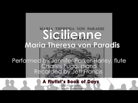Born in Vienna on this day in 1759, pianist, singer and composer Maria Theresia von Paradis was blind from the age of 2. Her most famous composition, the Sicilienne posted here (originally for piano quartet), is now thought to have been composed by Samuel Dushkin, a composer himself who claimed to have found the work. Regardless of its origins, it is a poignant melody and a beautiful addition to the flute repertoire.